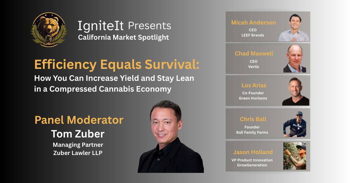 Join Managing Partner Tom Zuber at the IgniteIt California Cannabis Market Spotlight, moderating the panel, “Efficiency Equals Survival: How You Can Increase Yield and Stay Lean in a Compressed Cannabis Economy” on October 8th, 2025.